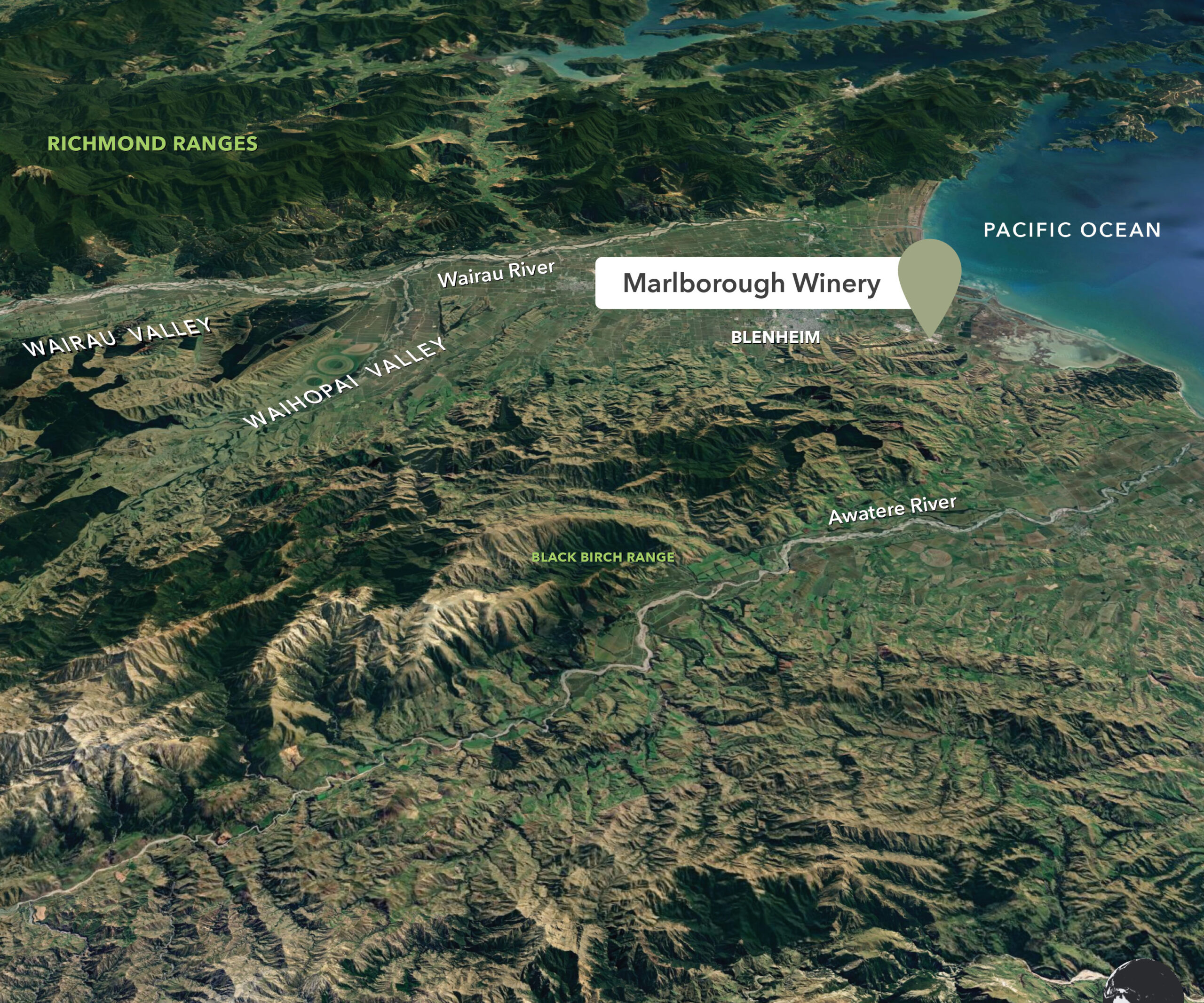 Situated at the top of New Zealand’s South Island, with Cook Strait to the north and the Pacific Ocean to the east, Marlborough experiences a cool, maritime-influenced climate that provides a cooling influence which, coupled with some of the highest sunshine hours in the country, creates the perfect environment for grape growing. Our vineyard estates have been deliberately placed in premium sites across the Wairau, Waihopai, and Awatere Valleys of Marlborough, providing access to a range of climates and soil types that deliver the unique diversity and depth of flavour we seek to create in our wines.